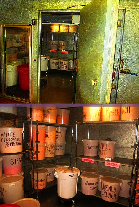 All of the flavors for the different styles of popcorn are stored back here in this state-of-the-art refrigerated vault.