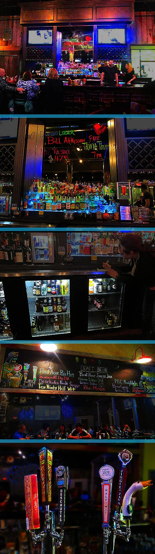 Here’s a shot of the bar and some of the lit-up inventory behind it in front of the mirror. As you can see, they have a large selection of bottled and canned beers and they also have a nice selection of beers on tap. The last photo is a half a dozen of them and there’s more than that in here for your sipping pleasure!