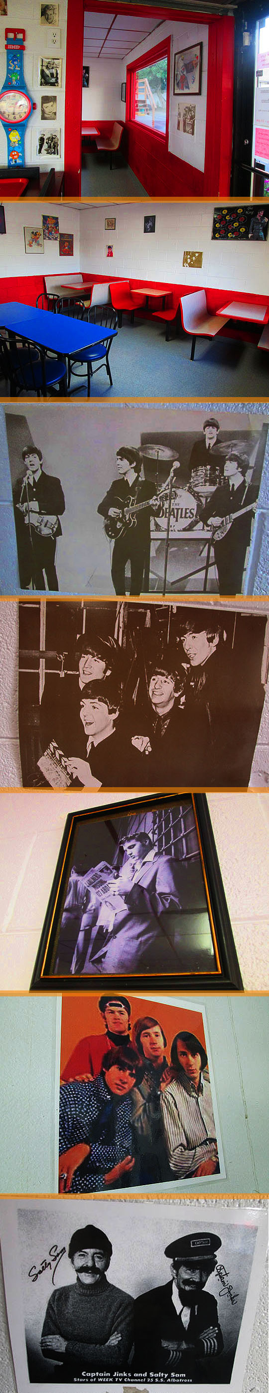 There’s another room over here with more booths and tables. There’s also pictures on the wall of the Fabulous Four, The King, The Pre-Fab Four and a signed photo of local legends, Salty Sam and Captain Jinks!