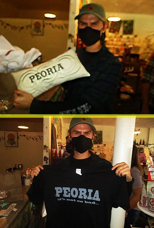 He got the Peoria Pillows and the “Peoria - It’s Not So Bad” t-shirt!