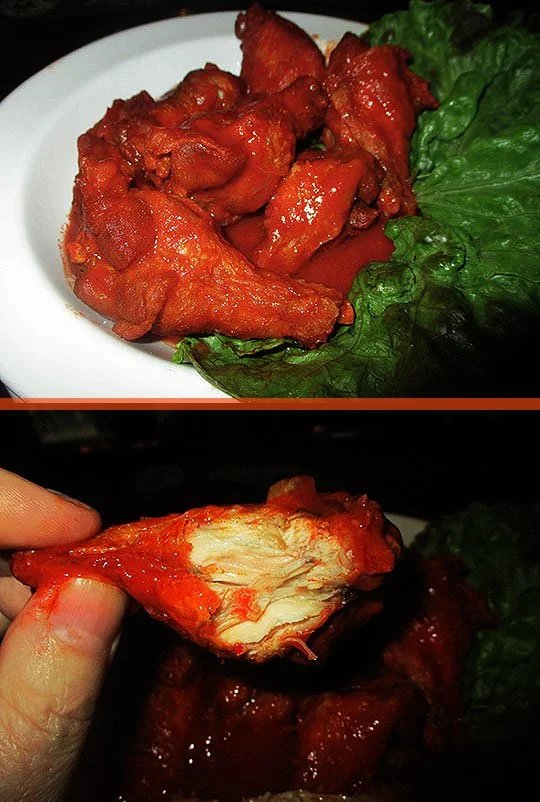The sauce was spicy with just the right amount of heat. They were tangy and hot, but not overwhelming.