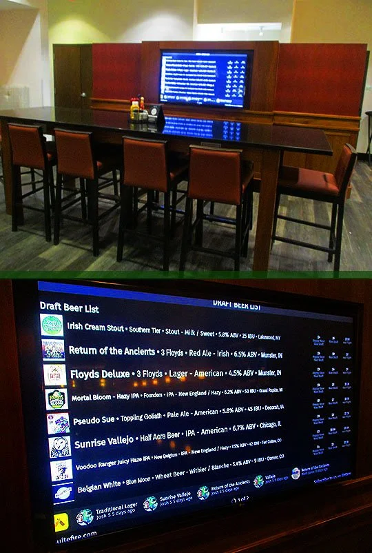 There’s a nice communal table in the back with a screen highlighting the rotating draft beer list.