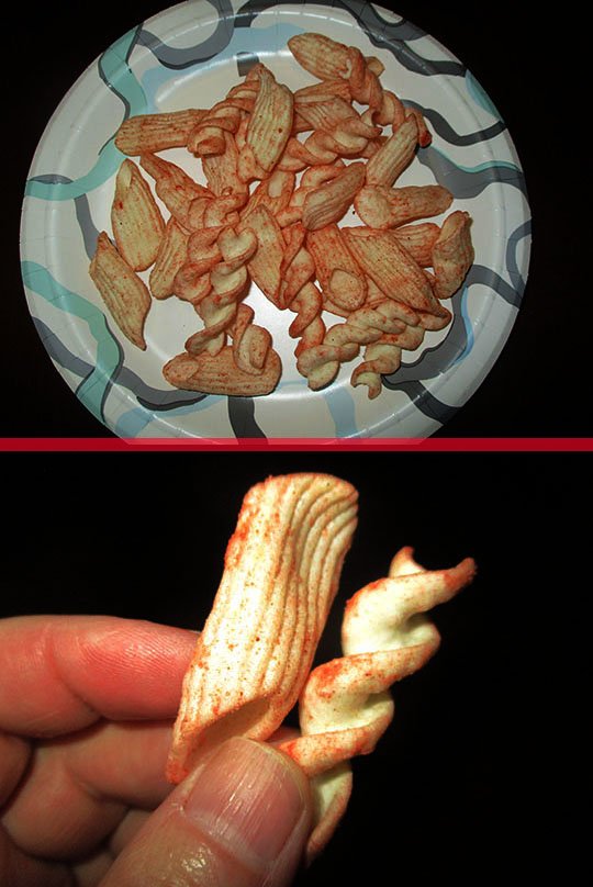Well, this really isn’t a snack mix, but just two different shapes of a crispy potato snack.