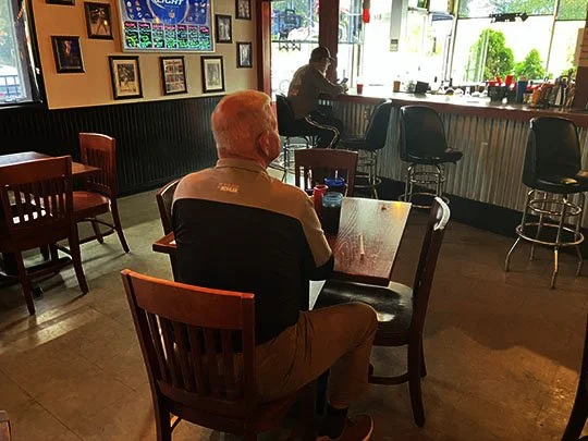 Normally, I’d sit at the bar, but as I mentioned in the introduction, we have a special guest star today and I think I see him over at that table in the dining room opposite the bar…