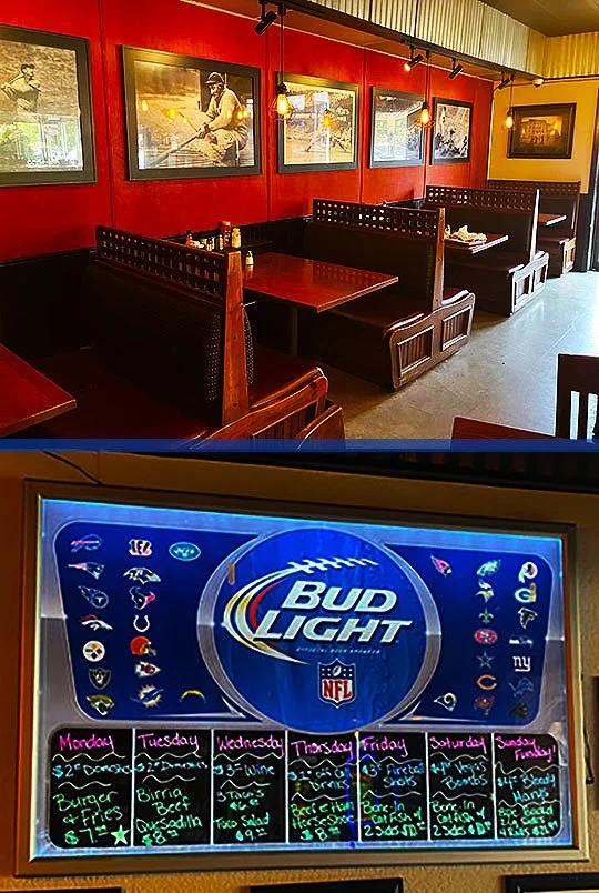Comfortable booths line the far wall in the dining room and there’s the daily drink specials on the wall.