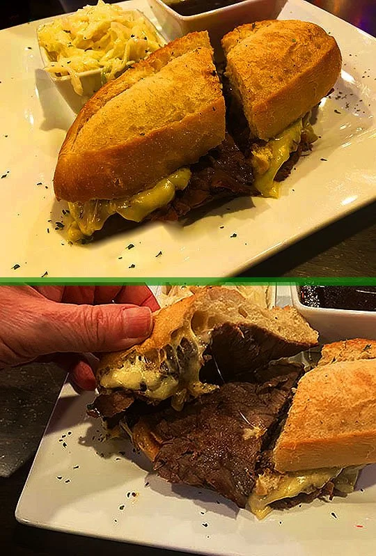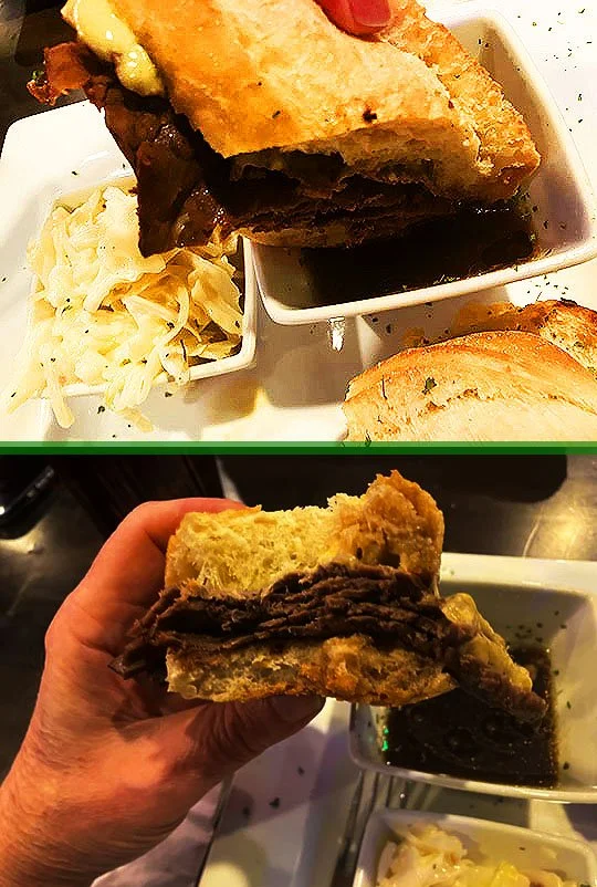 It comes with a cup of au jus from the Irish Stew and after you dip it in and take a bite, you will enjoy one of the most fresh and flavorful sandwiches in Peoria!