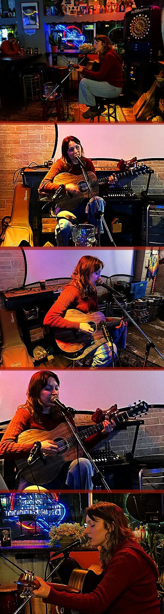 I told you there was live music here tonight and here it is. That’s Emily How onstage singing and playing songs with her acoustic guitar.