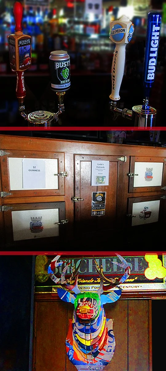 There’s the quartet of taps behind the bar and the wooden crates that house the legendary Castle’s Patio Inn cheese barrels!