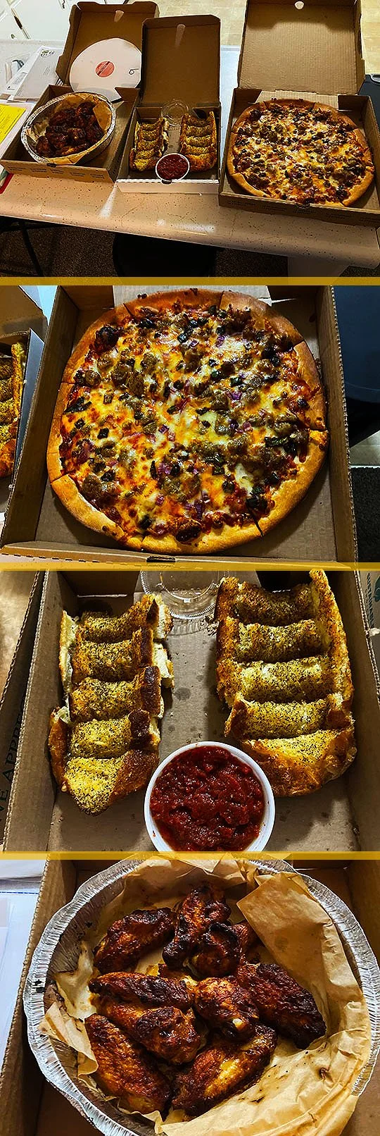 We also got an order of their homemade garlic bread with marinara sauce and we got an order of their baked chicken wings which are tasty and have just the right amount of spice and zing!