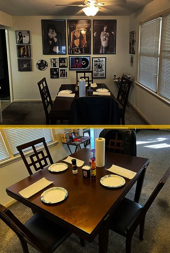 Okay, we’re back at the Joan Jett Dining Room at the MBIP World Headquarters and the table is all set for our festive pre-show dinner.
