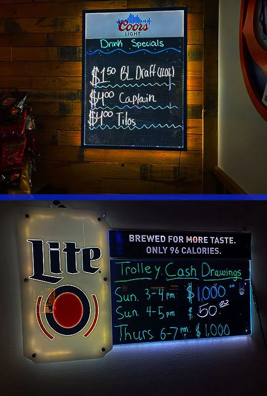 There’s some of the drink specials and they have three cash drawings through th eweek in here.