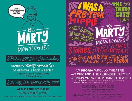 Here’s the posters for the first two Marty Monologues shows that Chelsie designed.