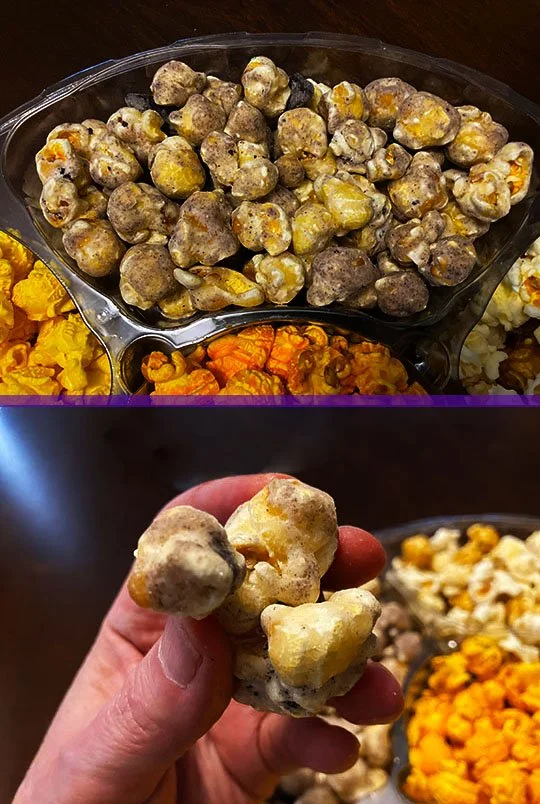 They have many unique flavors at Young’s Popcorn Heaven and this is popcorn made with an Oreo Cookie flavor and it utilizes chunks of actual Oreo cookies in the mix. A sweet and tasty treat!