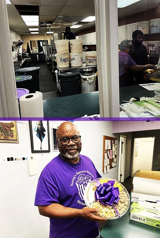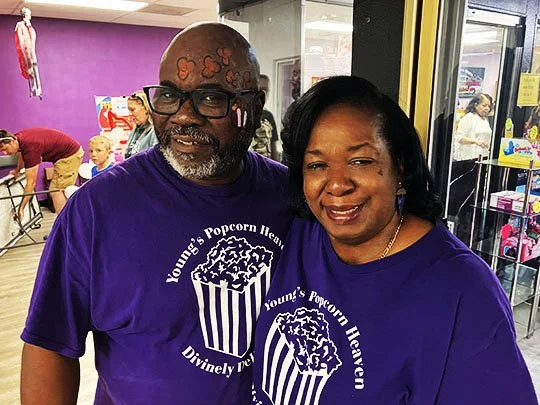 Here we are at Young’s Popcorn Heaven which is now located on Lake Avenue, they moved here in 2019 and their business has thrived ever since.