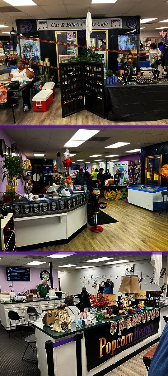 Wow, it’s quite the celebration in here. The place is packed with people and vendors celebrating the 10th anniversary of Young’s Popcorn Heaven!