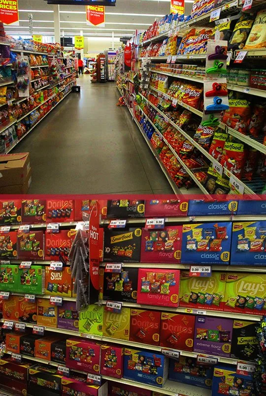 If you follow this blog, you know I do most of my grocery shopping at Schnucks grocery store on University. It’s just about a block from the MBIP World Headquarters, so it’s where I do most of my grocery shopping. However, the other week, I happened to stop in to the Hy-Vee in Sheridan Village and they had a wall of snack boxes in there!