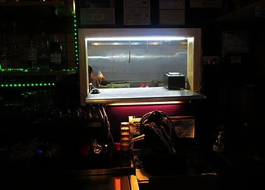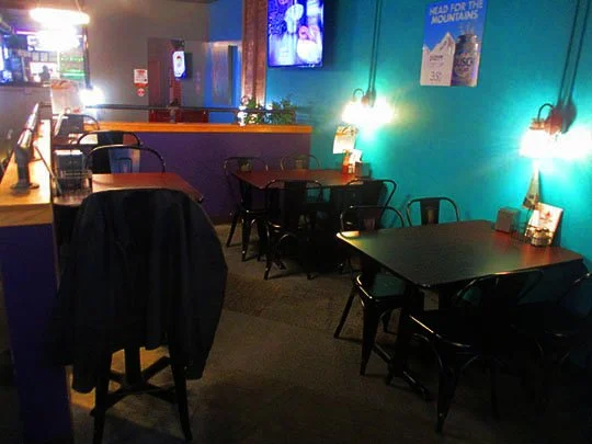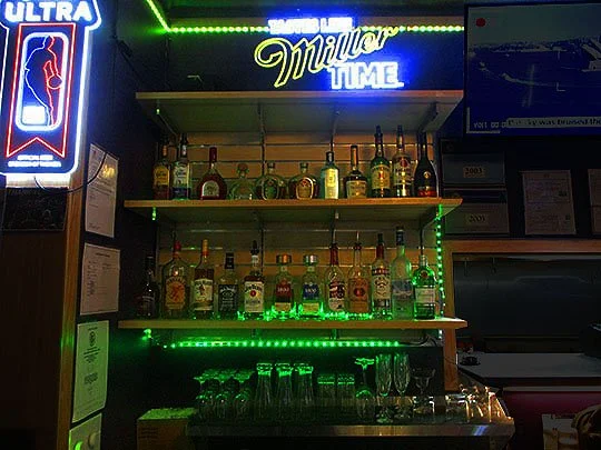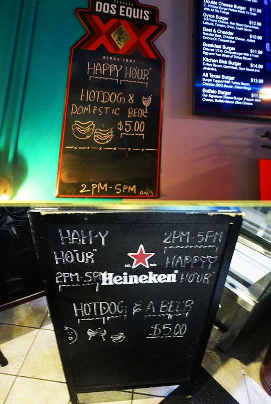 Happy Hour happens in here from 2pm to 5pm and you can get a beer and a hotdog for five bucks! Come on in and get happy!