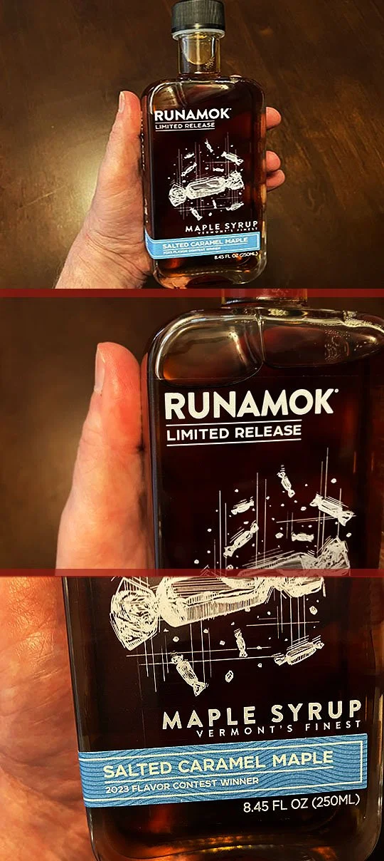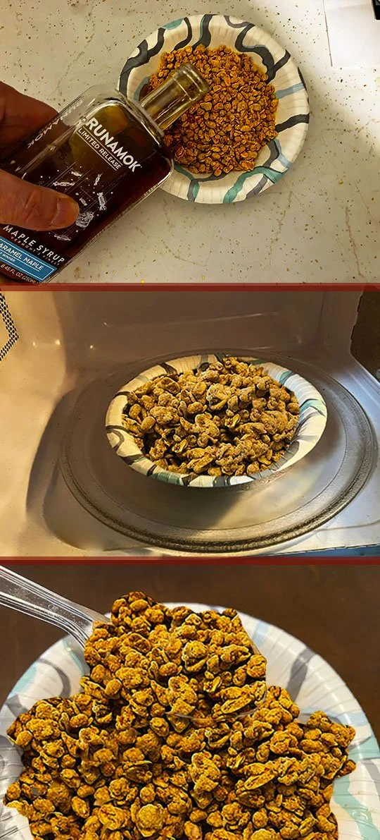 Now we’ll add the Runamok Limited Release Maple Syrup, put it in the microwave for 30 seconds and try it out.