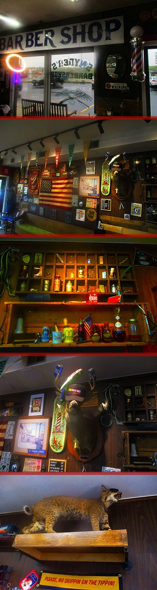 The shop definitely has an old school, neighborhood barbershop vibe to it. Lots of fun things to look at in here and that tiger survived the Washington Torndado in 2013!