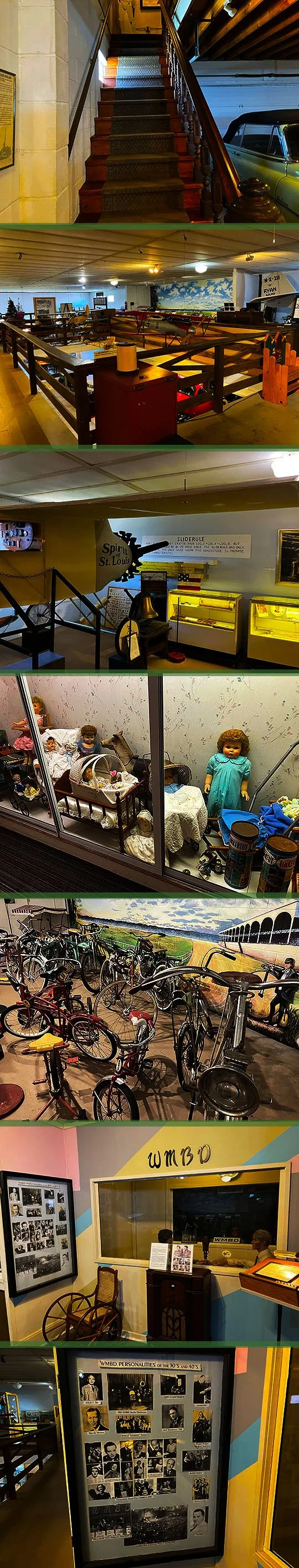 As you travel up these stairs you’ll see airplanes, kitschy dolls, bicycles and a cool WMBD historical display and a lot more!