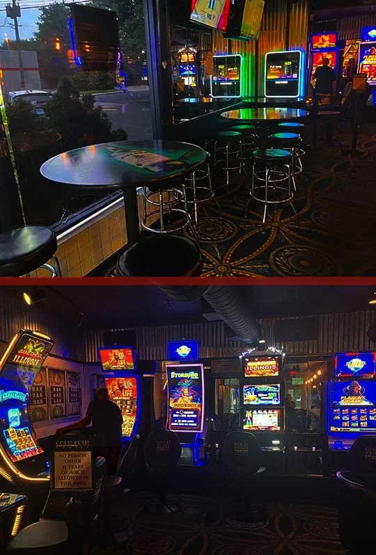 There’s cocktail tables opposite the bar and a gaming area in the back for all of you gamblers out there!