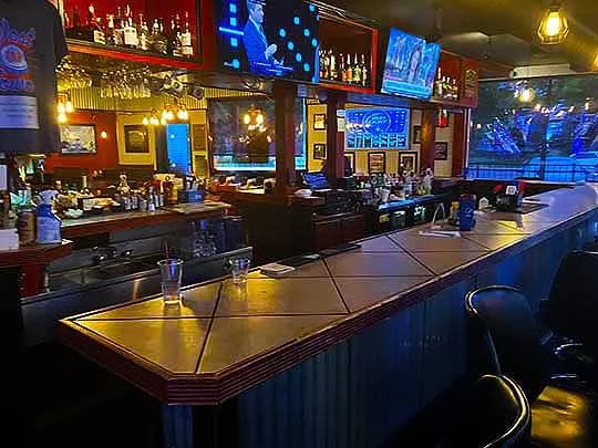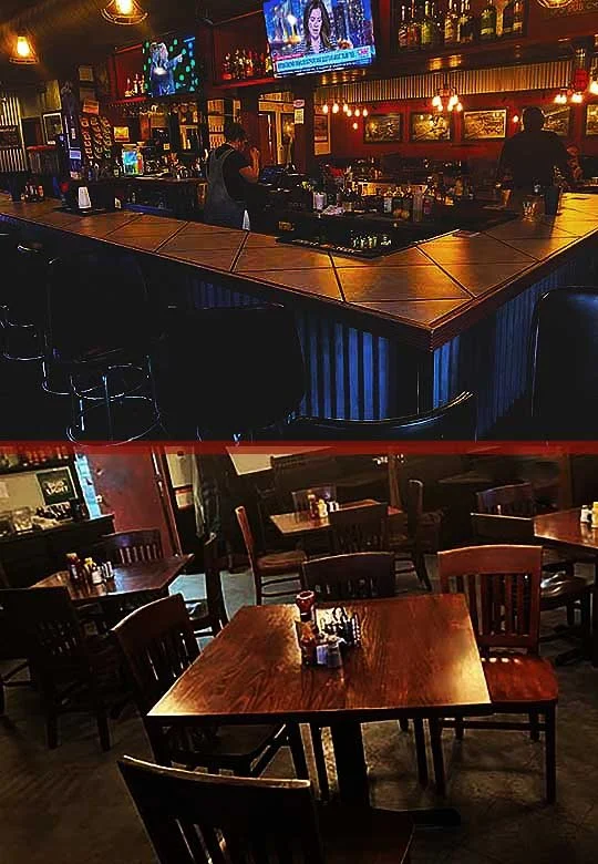 There’s the bar and the dining room tables in the dining room opposite the bar.