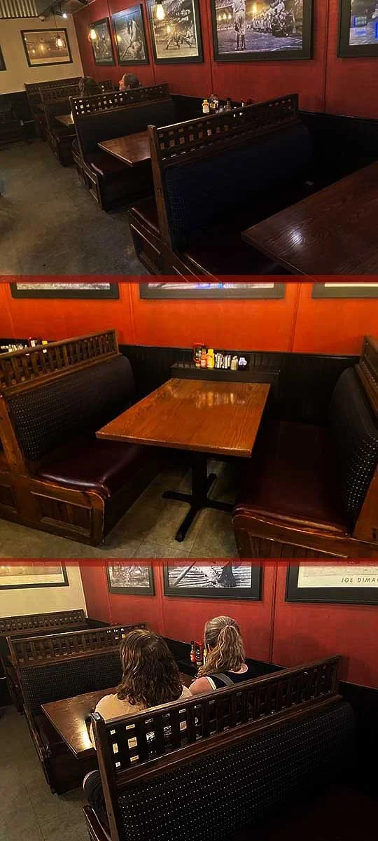 Comfortable booths line the back wall and I’ve never sat at the booths in here. Hey, I see the backs of two familiar people in here…