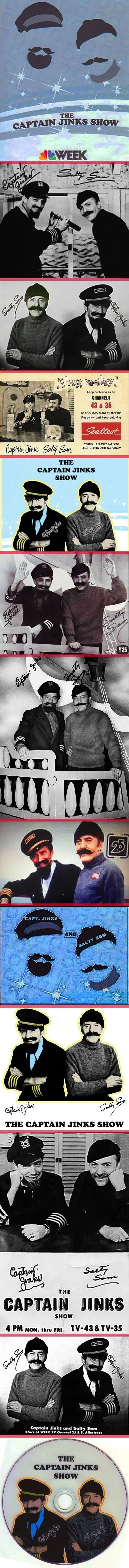 These guys are legendary and below are photos, text and videos from these iconic TV stars from Peoria’s past, the stars of The Captain Jinks Show: Captain Jinks and Salty Sam!