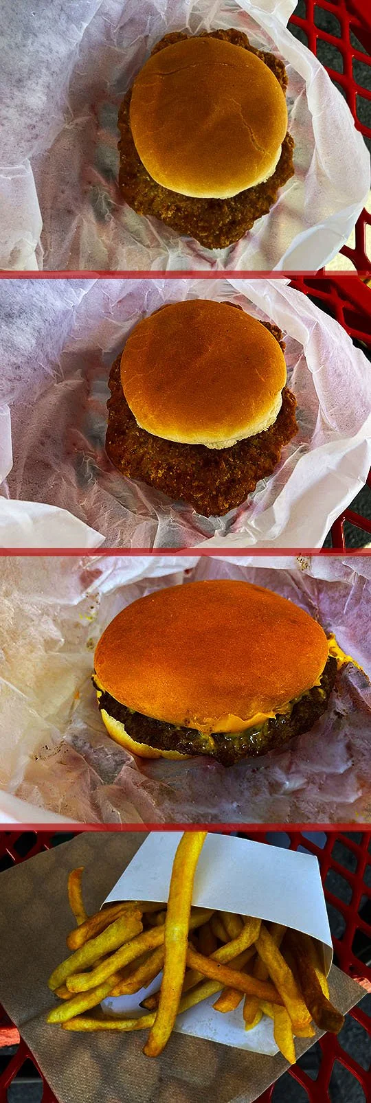 Danny and Patty each got a tenderloin, I got a cheeseburger and we each got an order of French fries. Everything looks fantastic, as it always does at Lou’s!