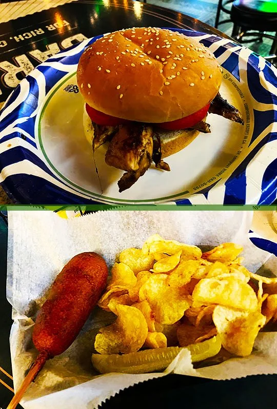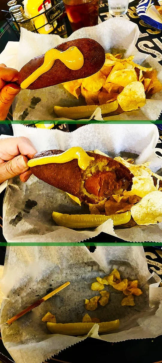 I thought we’d go out in style with a corn dog at Jimm’s Bar, one of my favorite Peoria places and a wonderful spot to end this hot diggity dog tour at!