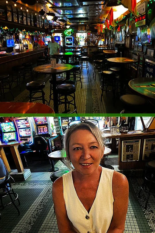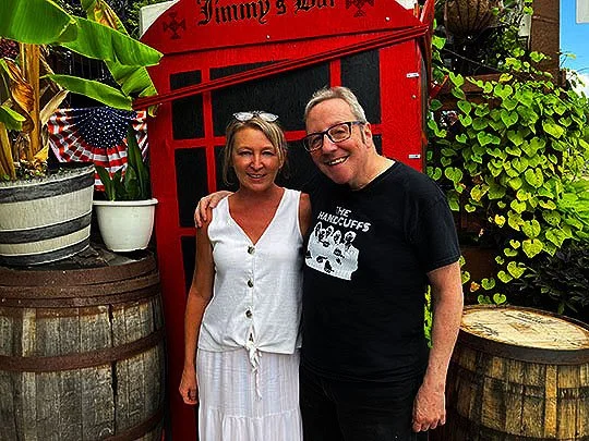Here’s Michelle and I outside of Jimmy’s Bar.