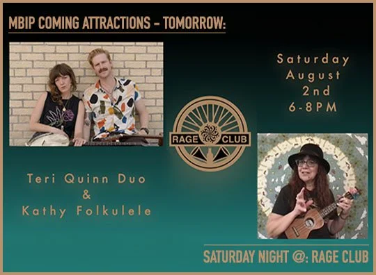 Monday: Last night I did something different for my Saturday night out on the town, I went to the Rage Club which is a music house in Peoria. The performers were the Teri Quinn Duo and Kathy Folkulele and it was a blast. Photos from this musical Saturday will be up on the blog tomorrow!
