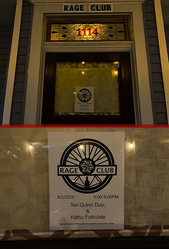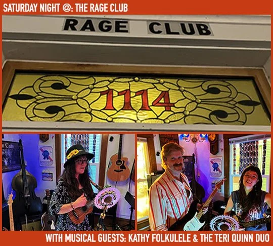 Live, from Peoria, Illinois, it’s Saturday Night starring this week’s host, The Rage Club and featuring musical guest stars, Kathy Folkulele and The Teri Quinn Duo!