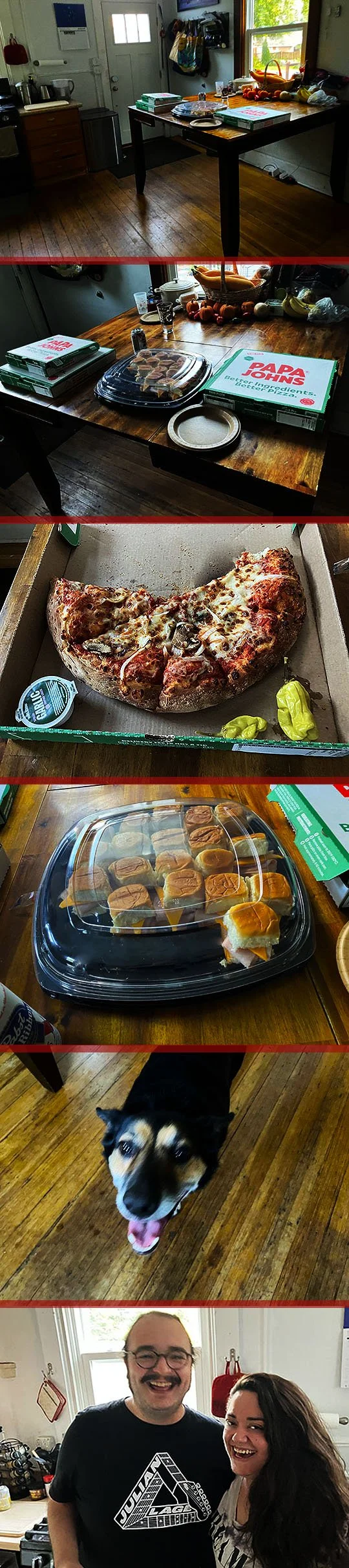 Then it was time for a break and time to enjoy our Saturday night dinner in the Rage Club kitchen. Evan had pizza and I brought a tray of deli sandwiches for the evening.