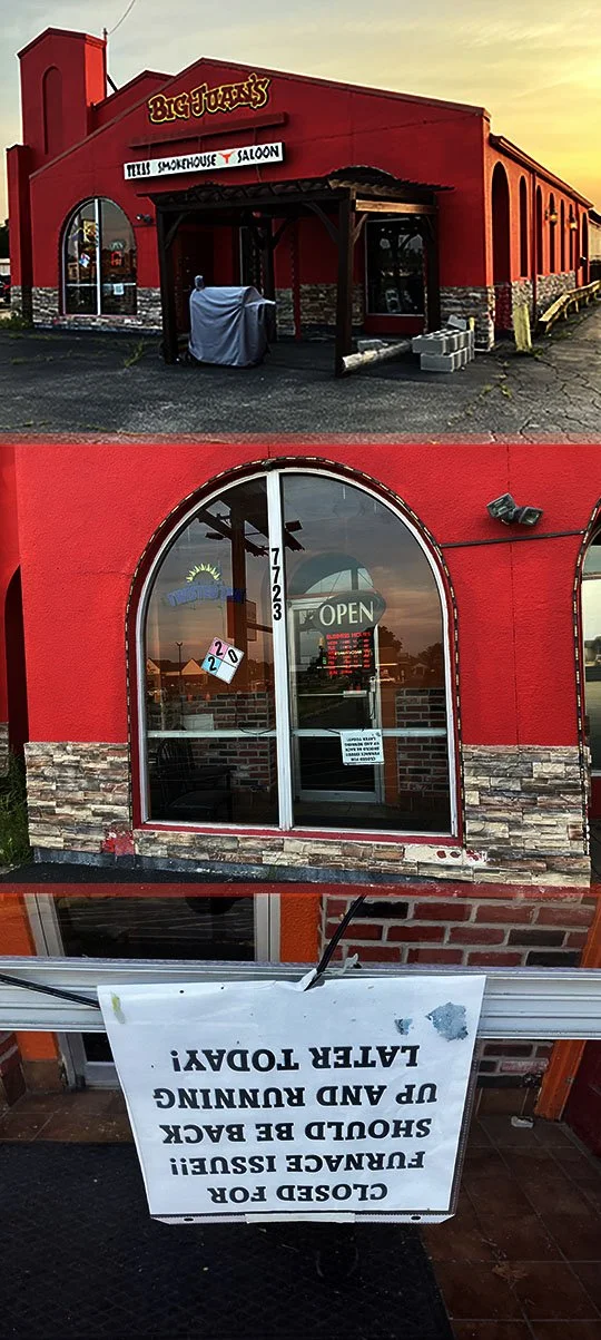 It still has the Big Juan’s signage, but they closed down last winter with this upside down sign saying they’d be up and running later and they never re-opened. Their facecrack page hasn’t been updated since last October. It appears to be closed for good.