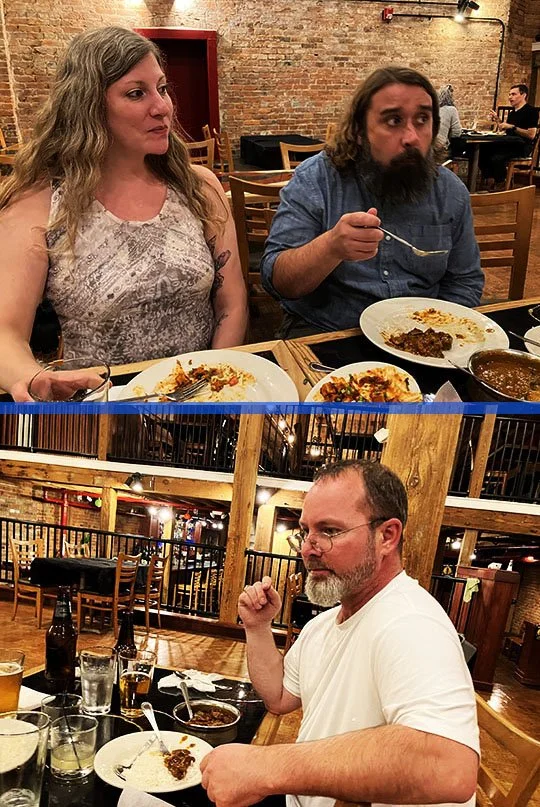 There’s Amber, Joe and Shaun enjoying their Indian dinners at Bay Leaf.