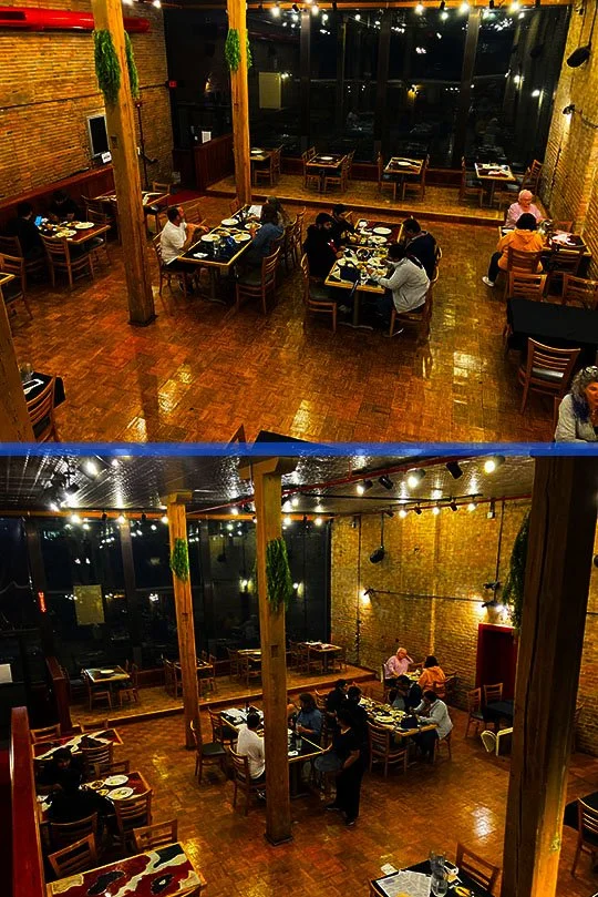 Here’s the two birds-eye-view shots I took of the impressive dining room at Bay Leaf.